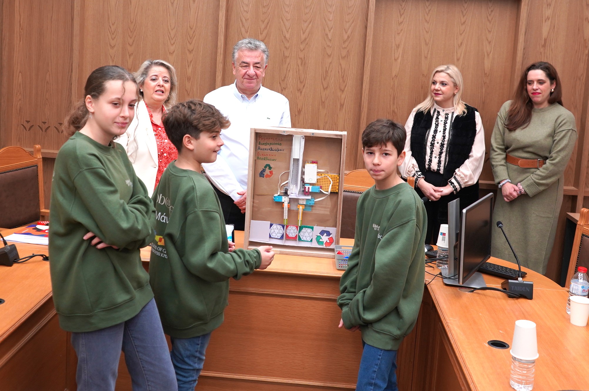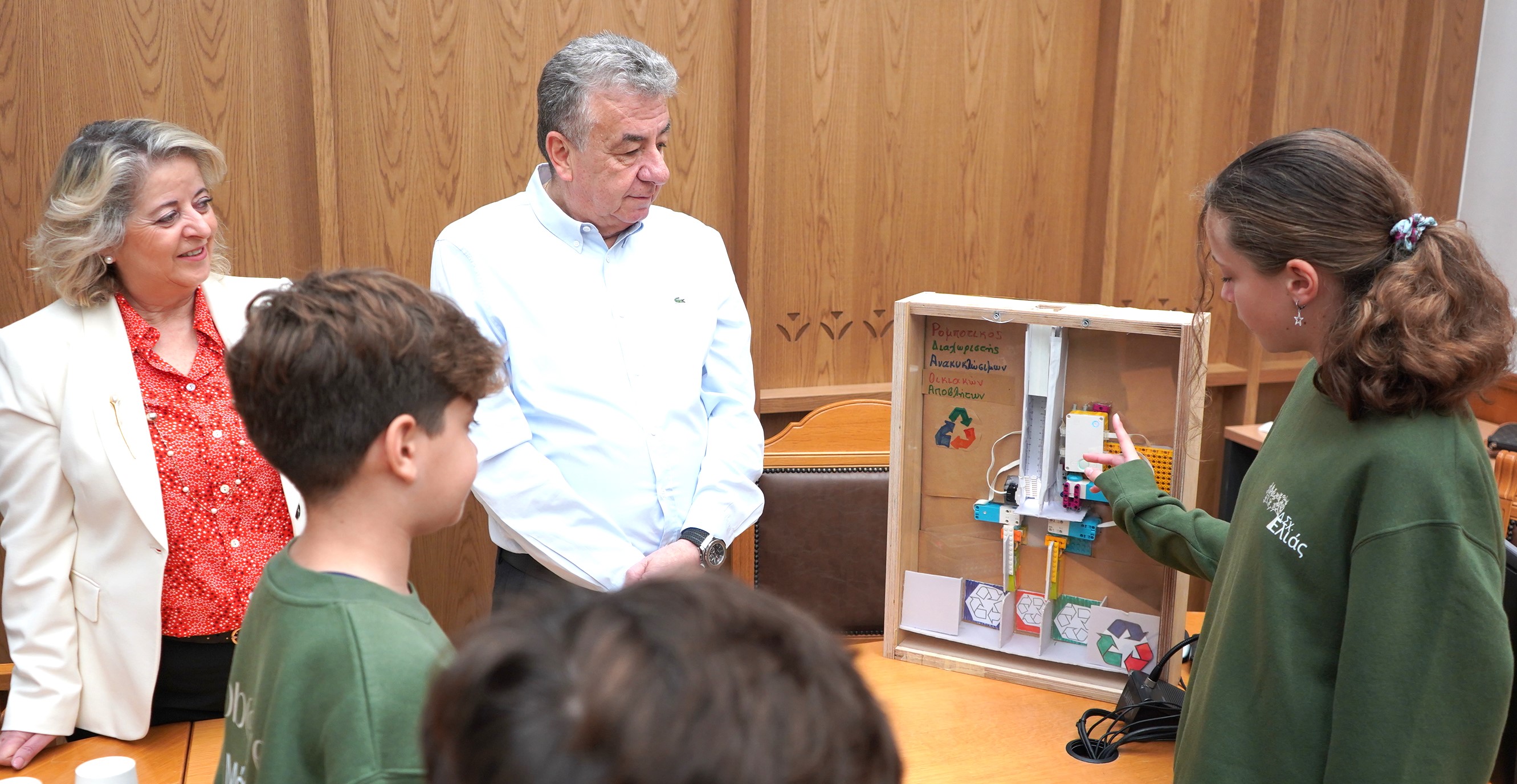 Επίσκεψη των μαθητών του Δημοτικού Σχολείου Ελιάς στον Περιφερειάρχη Κρήτης διάκρισή τους στο 10ο Μαθητικό Φεστιβάλ Ρομποτικής