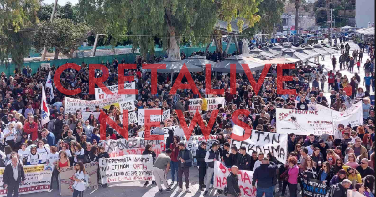 Στους δρόμους η Κρήτη για τη θλιβερή επέτειο της τραγωδίας των Τεμπών - Βίντεο