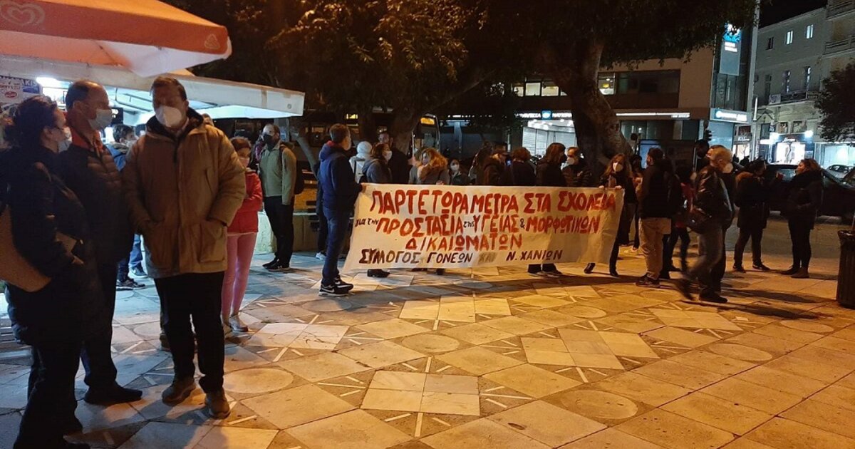 Με επιτυχία πραγματοποιήθηκε η κινητοποίηση που διοργάνωσαν οι Συλλογοι Γονέων και Κηδεμόνων και στήριξαν τα πρωτοβάθμια σωματεία την περασμένη Πέμπτη 20 Ιανουαρίου στις 19:00 στην πλατεία της Δημοτικής Αγοράς στα Χανιά.