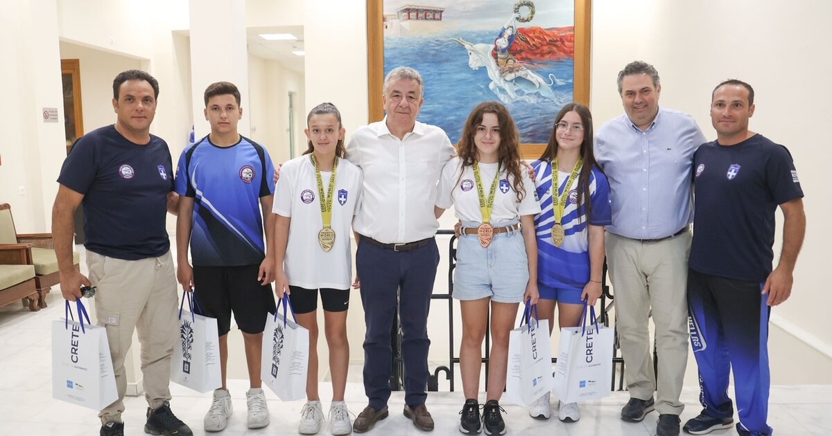 Ο Περιφερειάρχης και ο Αντιπεριφερειάρχης υποδέχτηκαν τους προπονητές και τους διακριθέντες αθλητές που προέρχονται από σχολές του Ηρακλείου, Βερικοκίδη Αικατερίνη ( 1η θέση), Καλλιγιαννάκη Αντωνία (1η θέση), Ψυλλάκη Σοφία (3η θέση), Ριζάκη Βασιλική (5η θέση), Ριζάκη Μαρία Καλλιόπη (7η θέση), Ιωάννη Zαϊμάκη (7η θέση), Αλέξανδρο Zαϊμάκη (προπονητή) και Γιώργου Zαϊμάκη (προπονητή).
