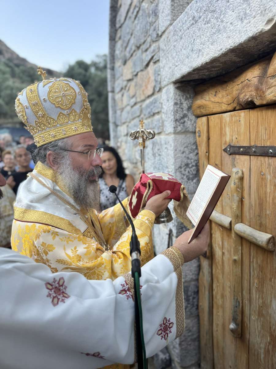 Το απόγευμα της Δευτέρας, 7ης Ιουλίου 2025, ο Σεβασμιώτατος Μητροπολίτης Ρεθύμνης και Αυλοποτάμου κ. Πρόδρομος μετέβη στο Σελλί Ρεθύμνου και στον Ιερό Ναό Αγίου Ιερομάρτυρος Ευαγγέλου, Επισκόπου Τόμεως (σημερινή Κωνστάντζα της Ρουμανίας), ο οποίος κτίσθηκε εις μνήμην του μακαριστού Ευαγγέλου Γιακουμάκη, όπου χοροστάτησε κατά τον Όρθρο και στη συνέχεια τέλεσε τα Ιερά Εγκαίνια του εν λόγω Ιερού Ναού, συμπαραστατούμενος από κληρικούς της Ιεράς Μητροπόλεως Ρεθύμνης και Αυλοποτάμου, με τη συμμετοχή πλήθους πιστών από ολόκληρη την Κρήτη.