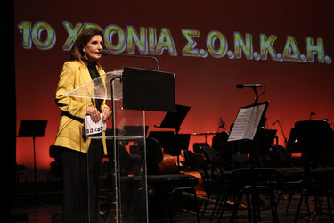 Η Αντιδήμαρχος Πολιτισμού Ρένα Παπαδάκη- Σκαλίδη, ευχαρίστησε από την πλευρά της τους γονείς που στηρίζουν τα παιδιά με υπομονή, εμπιστοσύνη και αγάπη, τα ίδια τα παιδιά που έχουν επενδύσει κόπο, ταλέντο και ψυχή, τους υψηλού επιπέδου εκπαιδευτές της ΣΟΝΚΔΗ καθώς και τον Καλλιτεχνικό Διευθυντή της Ορχήστρας Αρχιμουσικό Μίλτο Λογιάδη και δήλωσε: «Απόψε γιορτάζουμε 10 χρόνια μουσικής, δέκα χρόνια έμπνευσης και δημιουργικότητας κατά τα οποία νέοι άνθρωποι από όλη την Κρήτη βρήκαν χώρο προκειμένου να εκφραστούν, να ονειρευτούν, να καλλιεργήσουν το ταλέντο τους, να εξελιχθούν μουσικά αλλά και επαγγελματικά εντός και εκτός Ελλάδος. Η ΣΟΝΚΔΗ δέκα χρόνια μετά, έχει εξελιχθεί σε μια από τις πιο ουσιαστικές πολιτιστικές κατακτήσεις του Δήμου μας».