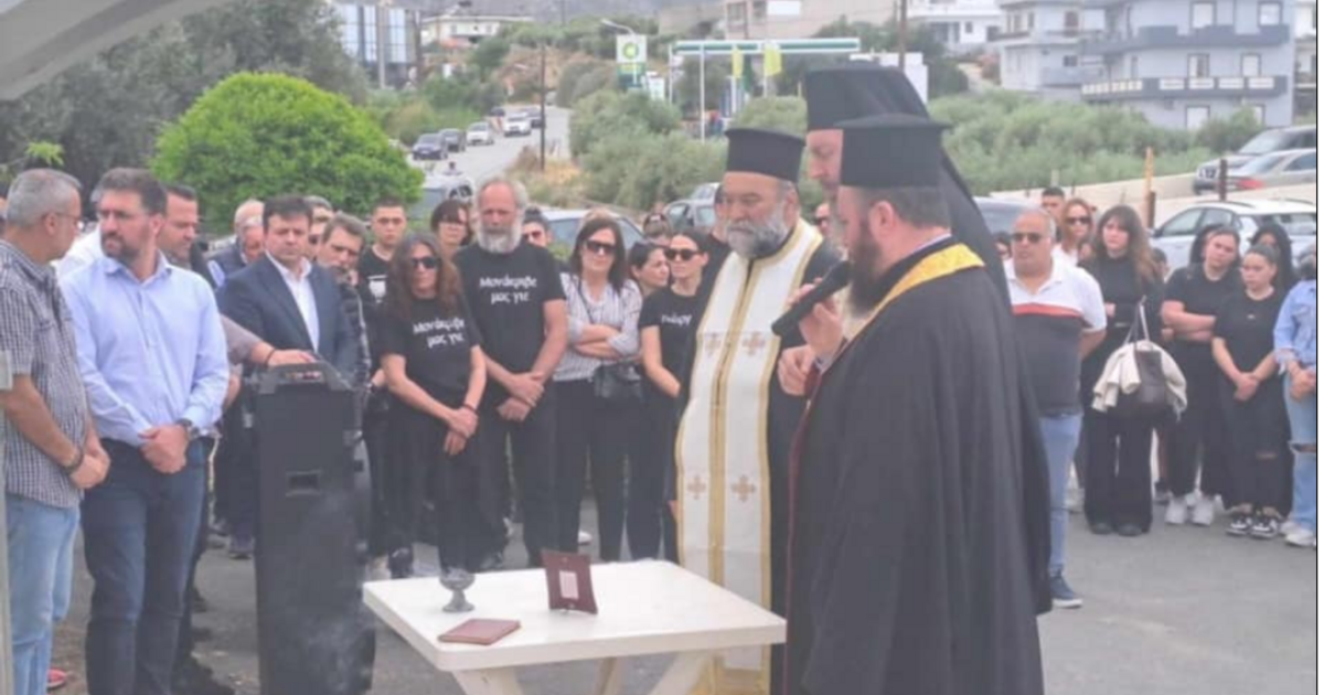 Το τρισάγιο έγινε κοντά στο Λύκειο Γαζίου, στο σημείο όπου στήθηκε όπως έγραψε το Cretalive, μια πρότυπη στάση -που χρησιμοποιούν οι μαθητές και χρησιμοποιούσε κι ο Γιώργος- από την οικογένεια του ανήλικου που έσβησε μετά από πολυήμερη νοσηλεία στη ΜΕΘ του Βενιζελείου.