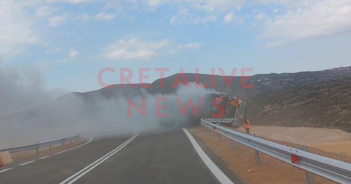 Συγκλονιστικό βίντεο: οι πρώτες στιγμές μετά την ανατροπή μπετονιέρας στον δρόμο Χερσόνησος - Καστέλι