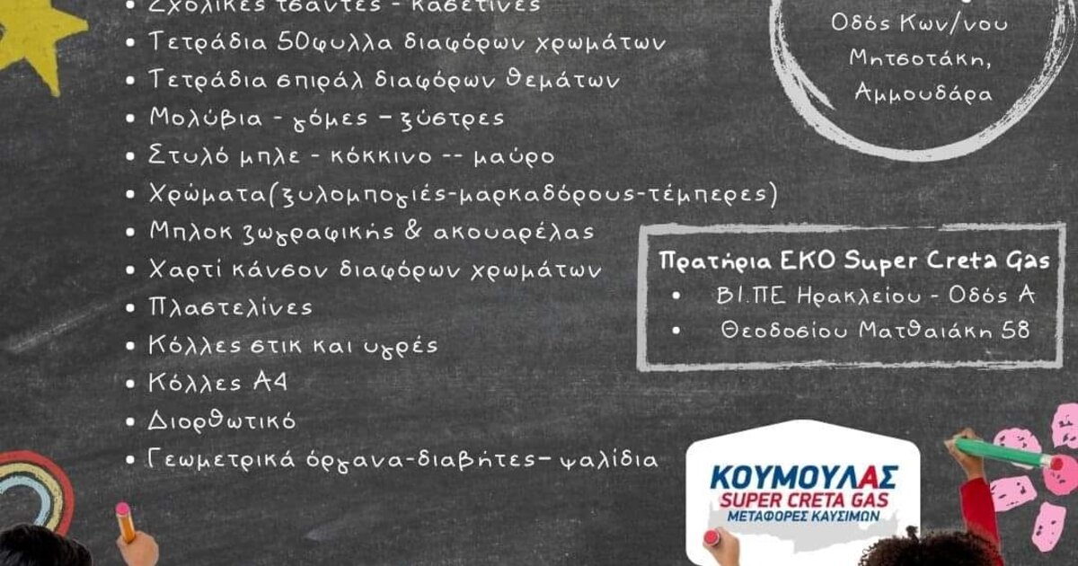 Συλλογή σχολικών ειδών από την Super Creta Gas