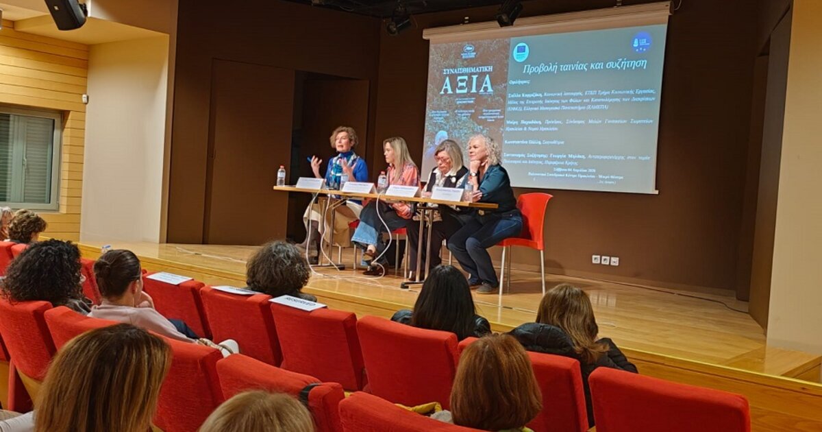 Ιδιαίτερα ζωντανός και ουσιαστικός ήταν ο διάλογος που ακολούθησε της προβολής, με τη συμμετοχή ομιλητών, οι οποίοι προσέγγισαν την ταινία μέσα από διαφορετικές οπτικές. Στο πάνελ συμμετείχαν η σκηνοθέτρια Κωνσταντίνα Πάλλη, η κοινωνική λειτουργός Στέλλα Κυρμιζάκη, μέλος της Επιτροπής Ισότητας των Φύλων και Καταπολέμησης των Διακρίσεων του Ελληνικό Μεσογειακό Πανεπιστήμιο, καθώς και η πρόεδρος του Συνδέσμου Μελών Γυναικείων Σωματείων Ηρακλείου & Νομού Ηρακλείου Μαίρη Παχιαδάκη.
