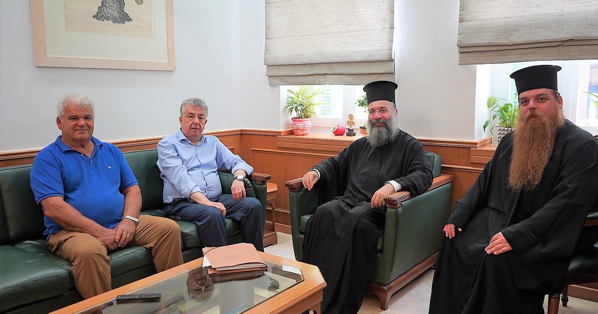 Με τον Μητροπολίτη Ρεθύμνης και Αυλοποτάμου κ. Πρόδρομο συναντήθηκε σήμερα ο Περιφερειάρχης Κρήτης Σταύρος Αρναουτάκης και συζήτησαν θέματα συνεργασίας της τοπικής Εκκλησίας με την Περιφέρεια Κρήτης για την στήριξη της θρησκευτικής, πολιτιστικής και ιστορικής κληρονομιάς στην περιοχή της Μητρόπολης.