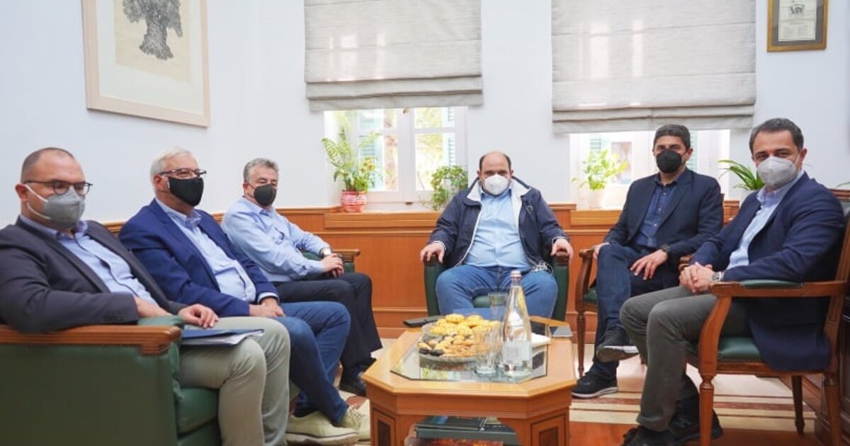 Παρόντες στη συνάντηση είναι ο Υφυπουργός Αθλητισμού Λευτέρης Αυγενάκης, ο βουλευτής Ηρακλείου Μάξιμος Σενετάκης, ο Γενικός γραμματέας οικονομικής πολιτικής του υπουργείου οικονομικών Νικόλαος Κουλοχέρης, ο Γενικός γραμματέας Υπουργείου Εσωτερικών Μιχάλης Σταυριανουδάκης και ο Αντιπεριφερειάρχης Ηρακλείου Νίκος Συριγωνάκης.
