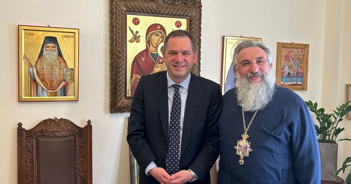 Ο Αρχιεπίσκοπος ενημέρωσε τον Φ. Λαμπρινό για τις δράσεις της Ιεράς Αρχιεπισκοπής Κρήτης, την έμφαση που αποδίδει στην εξωστρέφειά της και το όραμά του για την ενίσχυση του έργου της.