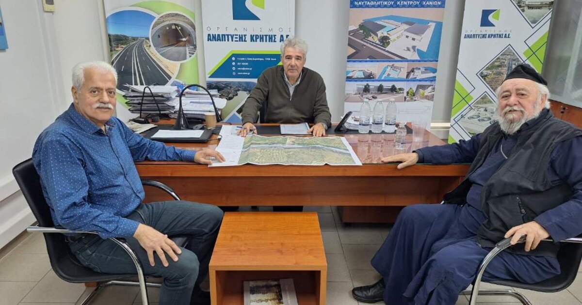 Συνάντηση εργασίας πραγματοποιήθηκε στο γραφείο του Διευθύνοντος Συμβούλου του Οργανισμού Ανάπτυξης Κρήτης (Ο.Α.Κ.), κ. Άρη Παπαδογιάννη, με τη συμμετοχή του Δημάρχου Αποκορώνου, κ. Χαράλαμπου Κουκιανάκη, και του εφημερίου του Ιερού Ναού Αγίου Ραφαήλ, πατρός Λεωνίδα Ηλιάκη.