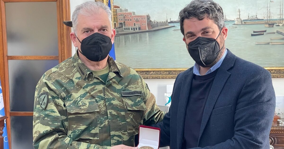 Στο γραφείο του στο Δημαρχείο Χανίων, υποδέχτηκε τον νέο Διοικητή του Πεδίου Βολής Κρήτης, Υποστράτηγο Σταύρο Τζουμερκιώτη, ο Δήμαρχος Χανίων, Παναγιώτης Σημανδηράκης.