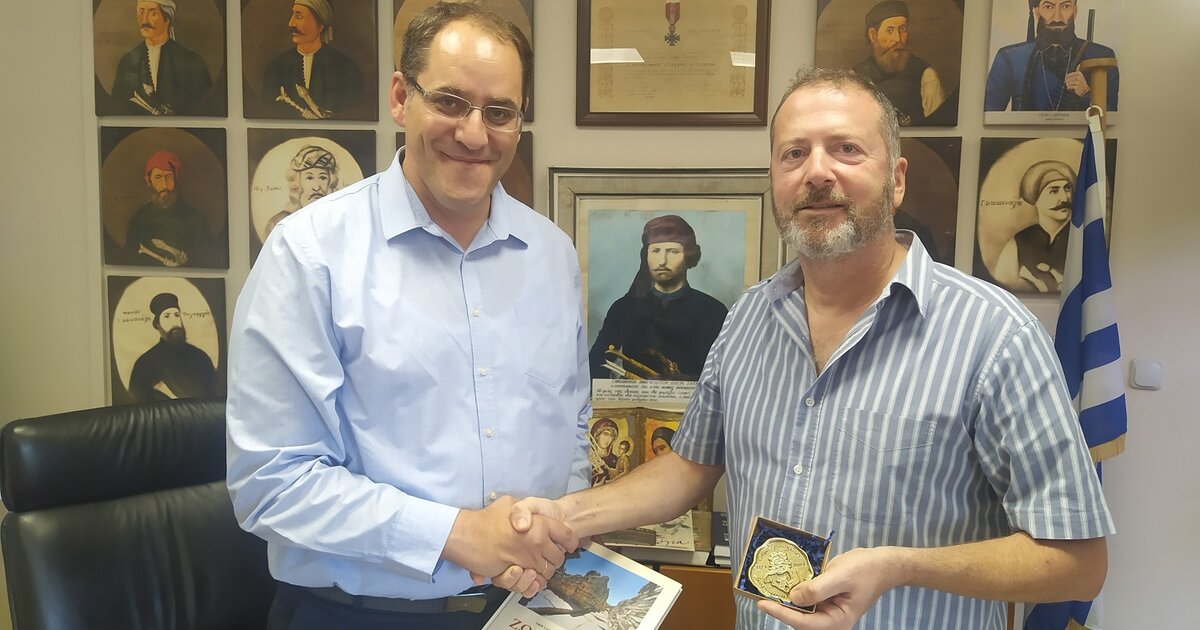 Ο Δήμαρχος έκανε δώρο στον κ. Δημητρακάκο την έκδοση για την ΖΩΜΙΝΘΟ "Ένα ανάκτορο στο βουνό" της Έφης Σαπουνά Σακελλαράκη, καθώς και το αναμνηστικό των 200 χρόνων απο μπρούτζο