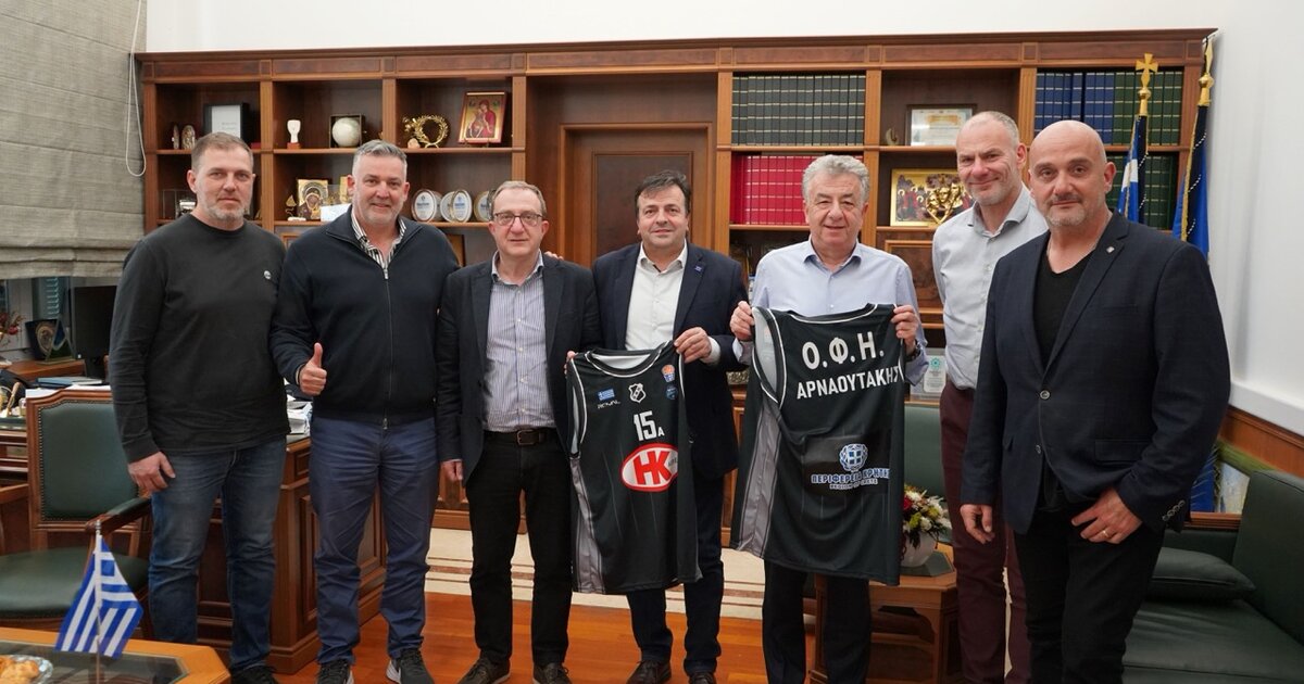 Τον Περιφερειάρχη Κρήτης Σταύρο Αρναουτάκη επισκέφθηκαν σήμερα τα μέλη της Διοικούσας Επιτροπής του τμήματος μπάσκετ ανδρών του ΟΦΗ, στο πλαίσιο της σταθερής συνεργασίας και επικοινωνίας του αθλητικού σωματείου με την Περιφέρεια.