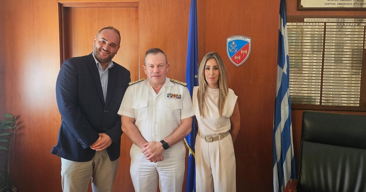 Στο πλαίσιο της επίσκεψης του Αρχηγού του Λιμενικού Σώματος, Αντιναυάρχου Τρύφωνα Κοντιζά, στο Κεντρικό Λιμεναρχείο Ηρακλείου την Παρασκευή 22 Αυγούστου 2025, πραγματοποιήθηκε συνάντηση με στελέχη του Οργανισμού Λιμένος Ηρακλείου Α.Ε.