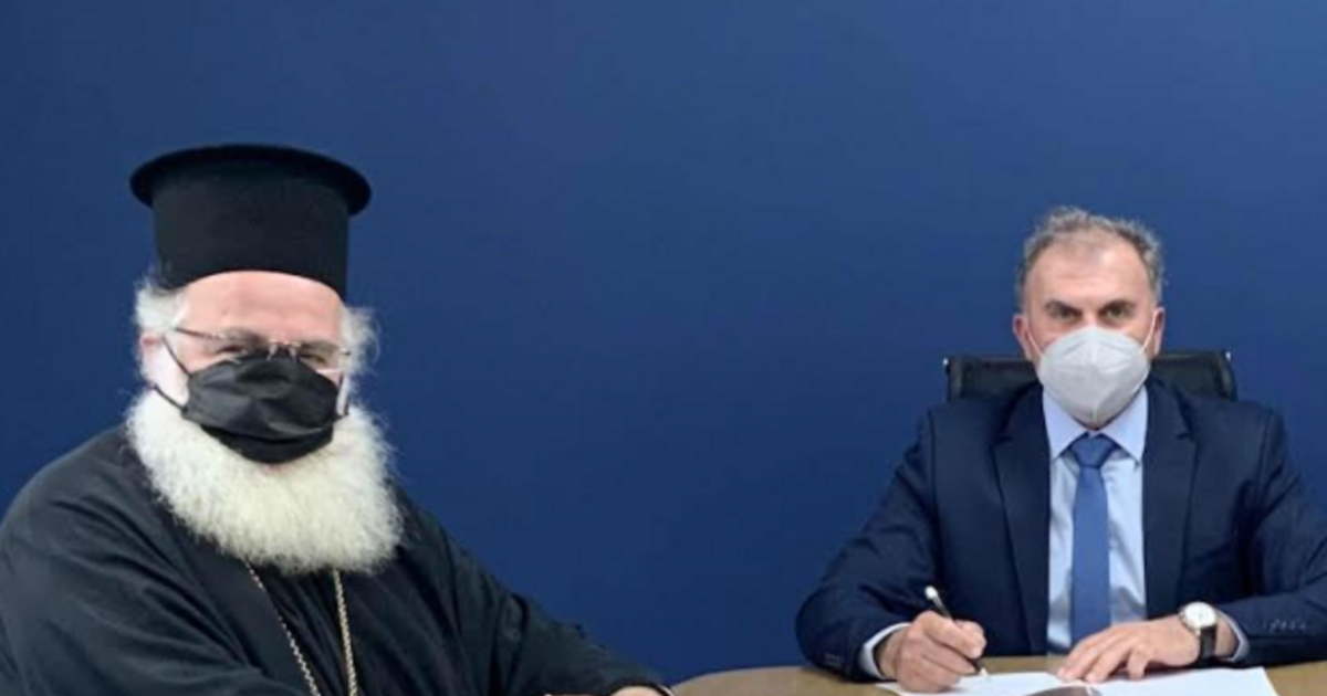 Τον Σεβασμιότατο Μητροπολίτη Ιεραπύτνης και Σητείας, κ. Κύριλλο, υποδέχθηκε στο Γραφείο του ο Δήμαρχος Ιεράπετρας, κ. Θεοδόσης Καλαντζάκης, προκειμένου να υπογράψουν την Προγραμματική Σύμβαση μεταξύ της Ιεράς Μητροπόλεως Ιεραπύτνης και Σητείας και του Δήμου Ιεράπετρας για το έργο «Ανέγερση κτιρίου στη θέση της παλαιάς οικίας Μελετίου Μεταξάκη, διαμόρφωση μονοπατιού προς βρύση και συντήρηση και ανακαίνιση δημοτικού σχολείου οικισμού Μεταξοχωρίου», προϋπολογισμού 133.000€. Παράλληλα με την υπογραφή της σύμβασης, συζητήθηκε το θέμα του εξοπλισμού του γηροκομείου, η εξέλιξη των έργων στον Δήμο της Ιεράπετρας, η μετά covid εποχή, ο πόλεμος στην Ουκρανία, κ.α.