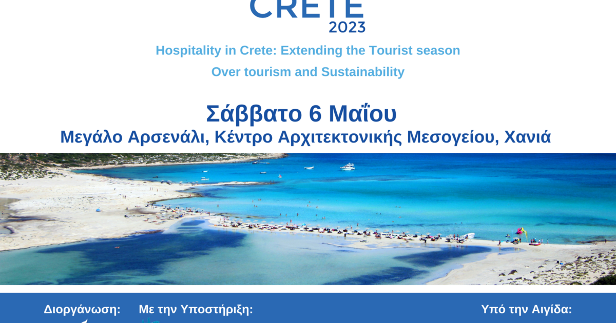 Το Choose Crete, υπό την Αιγίδα του Υπουργείου Τουρισμού, του ΕΟΤ και με την υποστήριξη της Περιφέρειας Κρήτης, θα πραγματοποιηθεί το Σάββατο 6 Μαΐου στο Μεγάλο Αρσενάλι, Κέντρο Αρχιτεκτονικής Μεσογείου στην πόλη των Χανίων, με θέμα "Hospitality in Crete: Extending the Tourist season | Over tourism and Sustainability”.