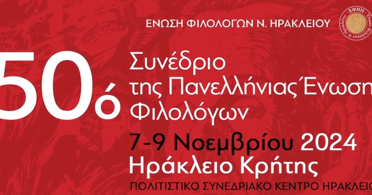 Η Ένωση Φιλολόγων Ν. Ηρακλείου (ΕΦΝΗ) έχει την τιμή να φιλοξενεί οργανωτικά το 50ο Συνέδριο της Πανελλήνιας Ένωσης Φιλολόγων (ΠΕΦ), που είναι αφιερωμένο στον Κώστα Βάρναλη και θα διεξαχθεί στο Ηράκλειο Κρήτης, 7 – 9 Νοεμβρίου 2024 , στο Πολιτιστικό Συνεδριακό Κέντρο Ηρακλείου (ΠΣΚΗ), Πλαστήρα & Ρωμανού.