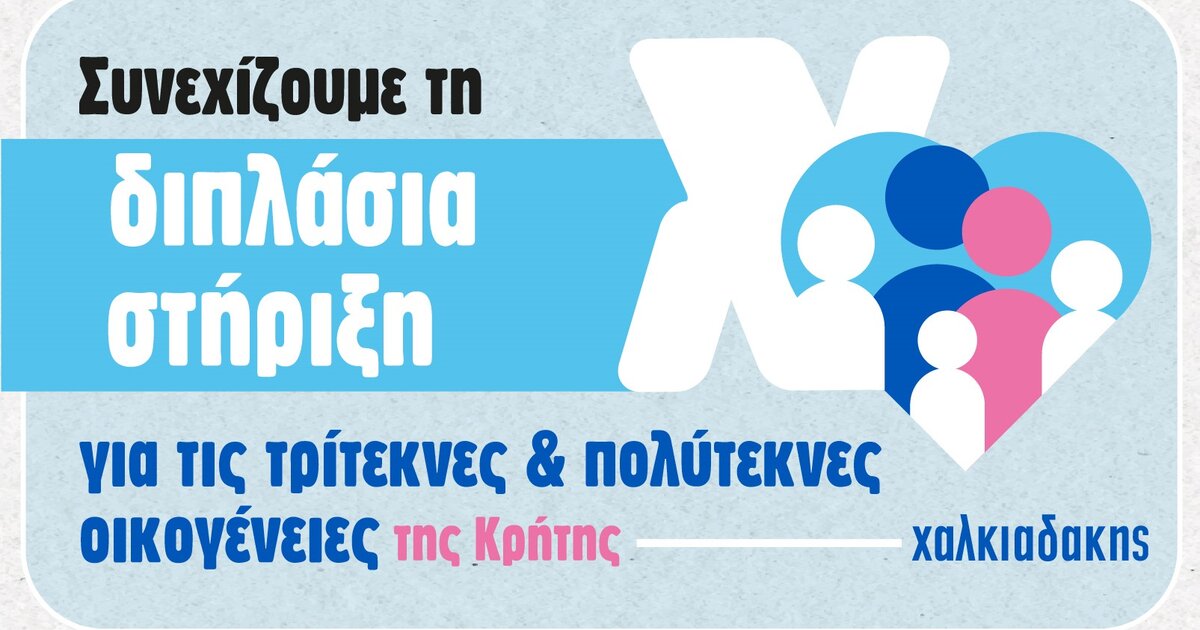 Συνεχίζεται η διπλάσια στήριξη για τρίτεκνες και πολύτεκνες οικογένειες στα σούπερ μάρκετ Χαλκιαδάκης