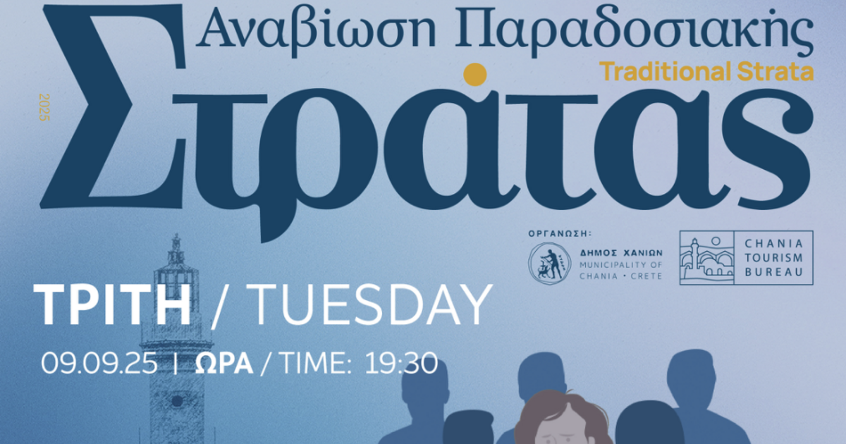 Αύριο, Τρίτη 09/09/2025, ο εθελοντισμός συναντά την παράδοση, σε μια ξεχωριστή παραδοσιακή Στράτα που "αγκαλιάζει" την 23η Πανελλήνια Λαμπαδηδρομία Εθελοντών Αιμοδοτών. Ο Χορευτικός Όμιλος Χανίων "Ο ΨΗΛΟΡΕΙΤΗΣ" και ο Σύλλογος Εθελοντών Αιμοδοτών Ν. Χανίων "Ο ΑΓΙΟΣ ΙΩΑΝΝΗΣ" παρουσιάζουν το δρώμενο: "ΠΑΡΑΔΟΣΗ & ΕΘΕΛΟΝΤΙΣΜΟΣ".