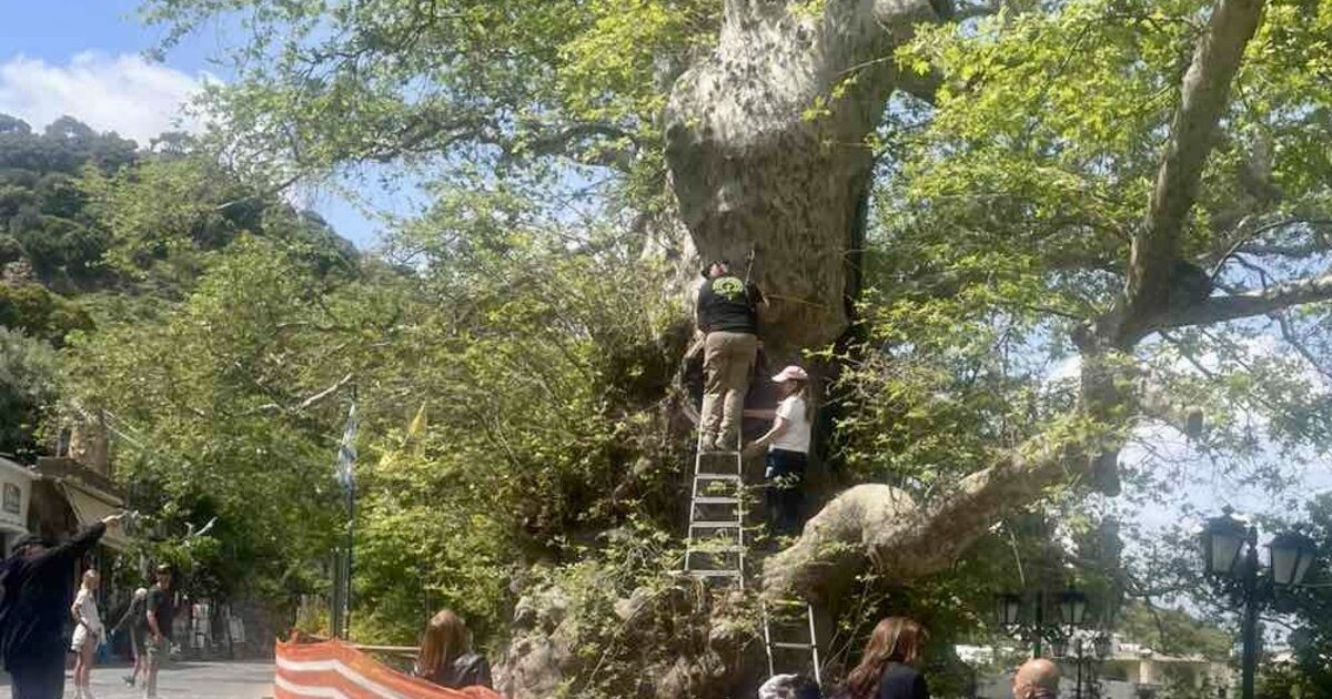 Συνεχίζονται οι έλεγχοι και οι παρεμβάσεις για τον μνημειακό πλάτανο στο Κράσι