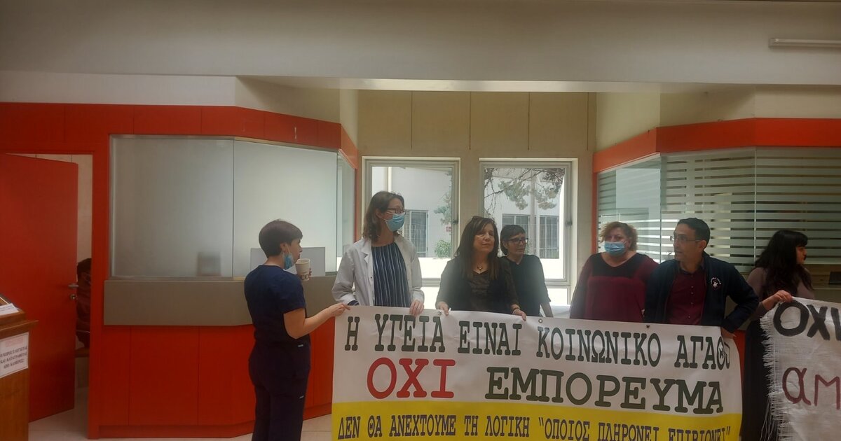 Συνεχίζονται οι αντιδράσεις των υγειονομικών στο Ηράκλειο ενάντια των απογευματινών χειρουργείων. Παράσταση διαμαρτυρίας διοργανώθηκε και πραγματοποιήθηκε από το Σωματείο Εργαζομένων ΠΑΓΝΗ, στον χώρο του νοσηλευτικού ιδρύματος.