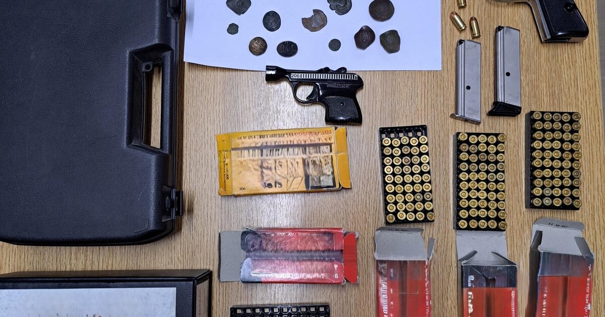 Κατασχέθηκαν 2 πιστόλια, 2 γεμιστήρες, 148 φυσίγγια και 11 νομίσματα αρχαίας κοπής