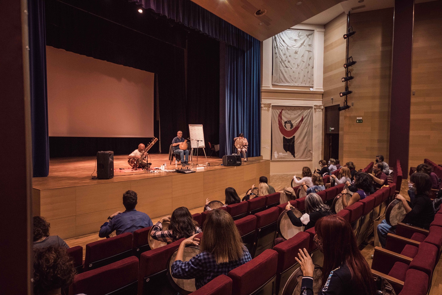Διατίθενται κρουστά μουσικά όργανα στον χώρο διεξαγωγής από το εργαστήρι Θεάτρου-Κινηματογράφου-Μουσικής του τμήματος Φιλολογίας.