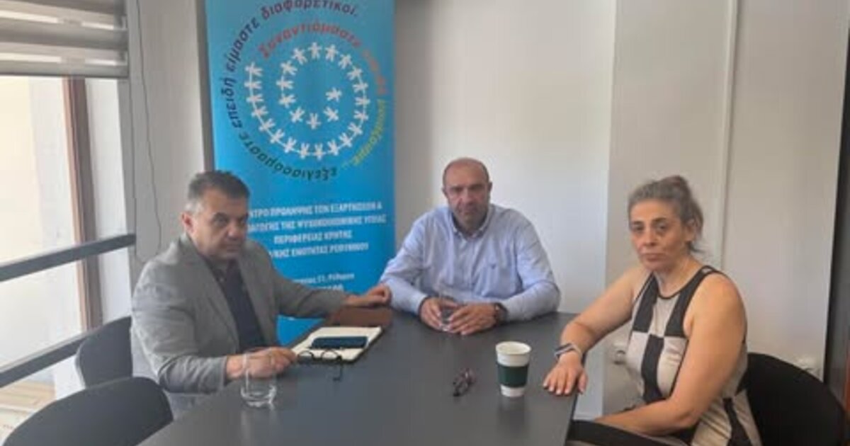 Την Τετάρτη 4 Ιουνίου πραγματοποιήθηκε στο χώρο του Κέντρου Πρόληψης Π.Ε Ρεθύμνου, συνάντηση εργασίας μεταξύ του κ. Σαρρή Μιχάλη, Προέδρου του Κέντρου Πρόληψης και του κ. Παπαδογιάννη Νεκτάριου, Αντιδημάρχου Παιδείας του Δ. Ρεθύμνης. Στην συνάντηση παρευρέθηκε, επίσης, η επιστημονικά υπεύθυνη, κα Μπογά Ανδρονίκη.