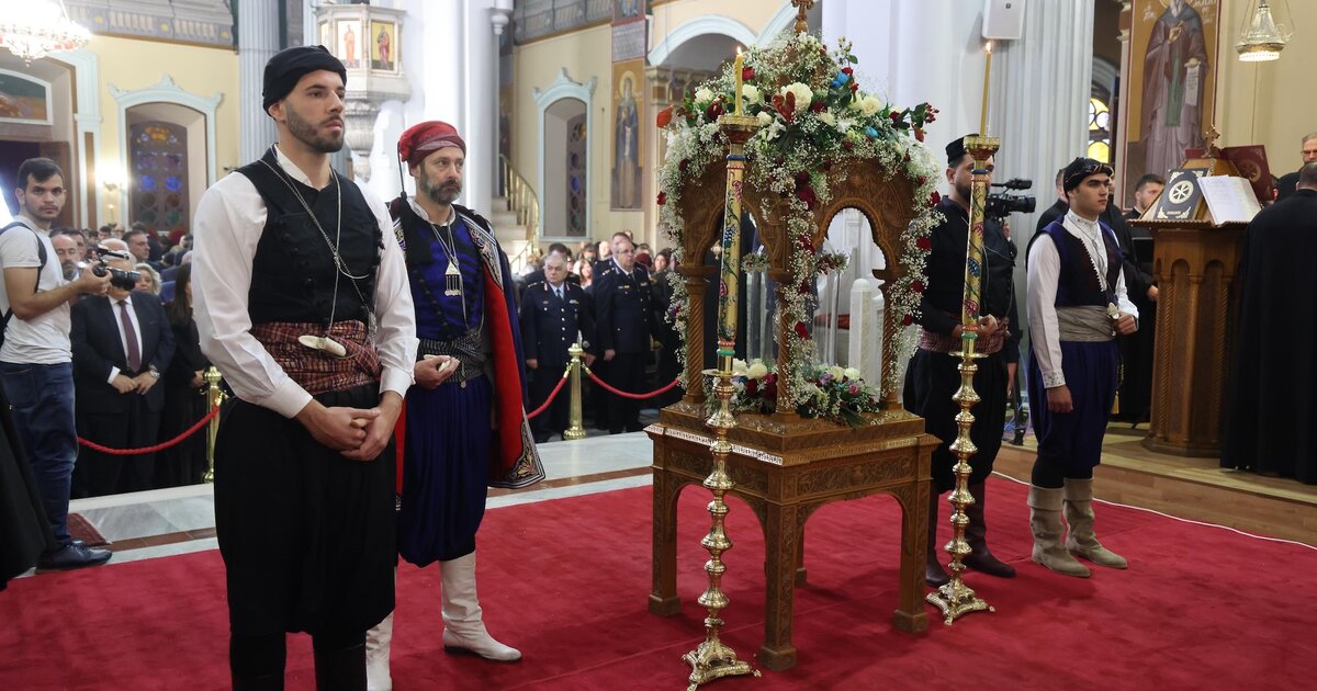 Πλήθος κόσμου στην πανηγυρική Θεία Λειτουργία - Κατάνυξη στη λιτάνευση του ιερού λειψάνου και της σεπτής εικόνας του Αγίου - Δείτε φωτογραφίες