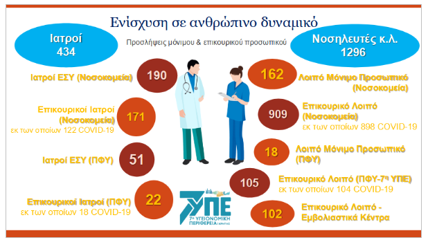 Παράλληλα με την διαχείριση της πανδημίας η απερχόμενη διοίκηση έδωσε ιδιαίτερο βάρος στην ενίσχυση των δομών υγείας με μόνιμο και επικουρικό προσωπικό.