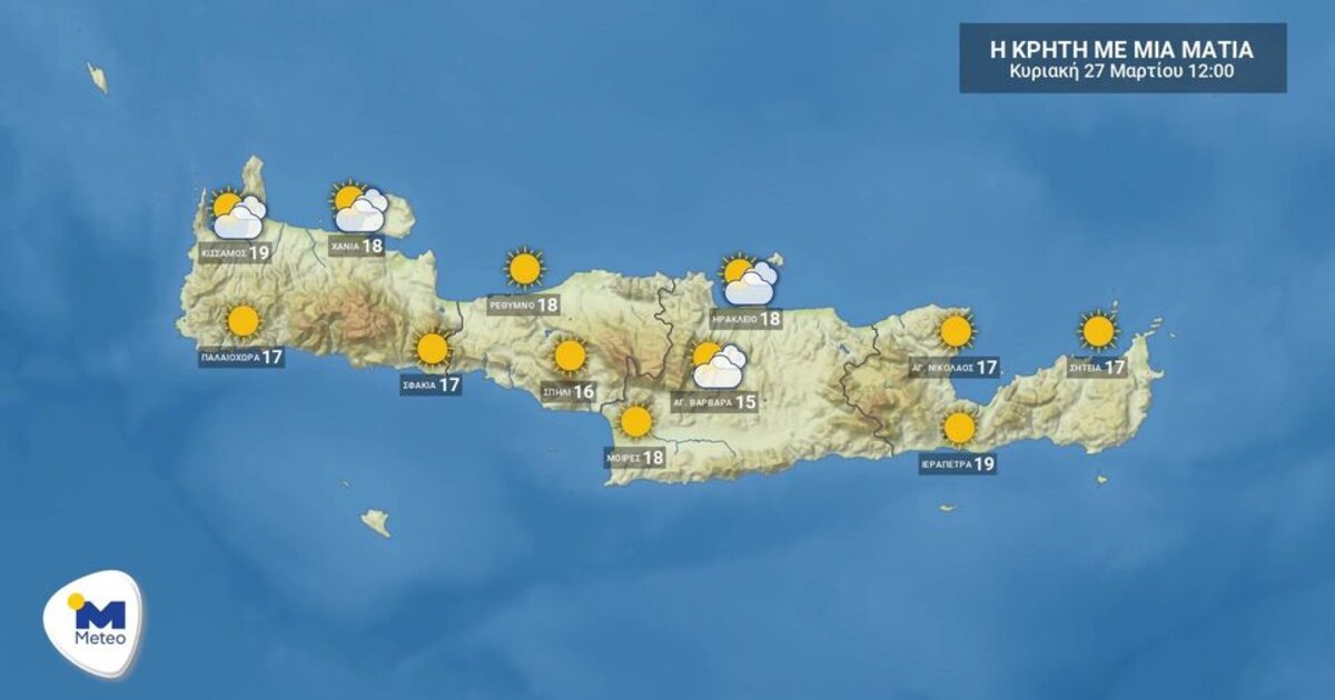 Συνvεφιά και θερμοκρασία ως 20 βαθμούς, την Κυριακή στην Κρήτη