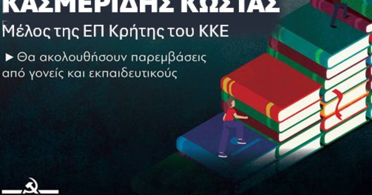 «Ολοκληρωμένη Εκπαίδευση, σύγχρονα και ασφαλή σχολεία: Πολυτέλεια ή Δικαίωμα;» με ομιλητή τον Κασμερίδη Κώστα, μέλος της ΕΠ Κρήτης του ΚΚΕ.