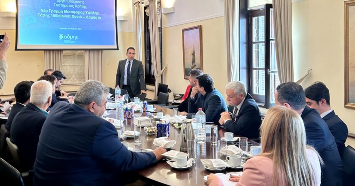 Σύσκεψη δημάρχων με το Διοικητικό Συμβούλιο του ΑΔΜΗΕ για το μεγάλο έργο «Γραμμή Μεταφοράς Υψηλής Τάσης 150kV Χανιά– Δαμάστα» πραγματοποιήθηκε την Τετάρτη, στην Αποκεντρωμένη Διοίκηση Κρήτης, υπό την προεδρεία της Μαρίας Κοζυράκη.
