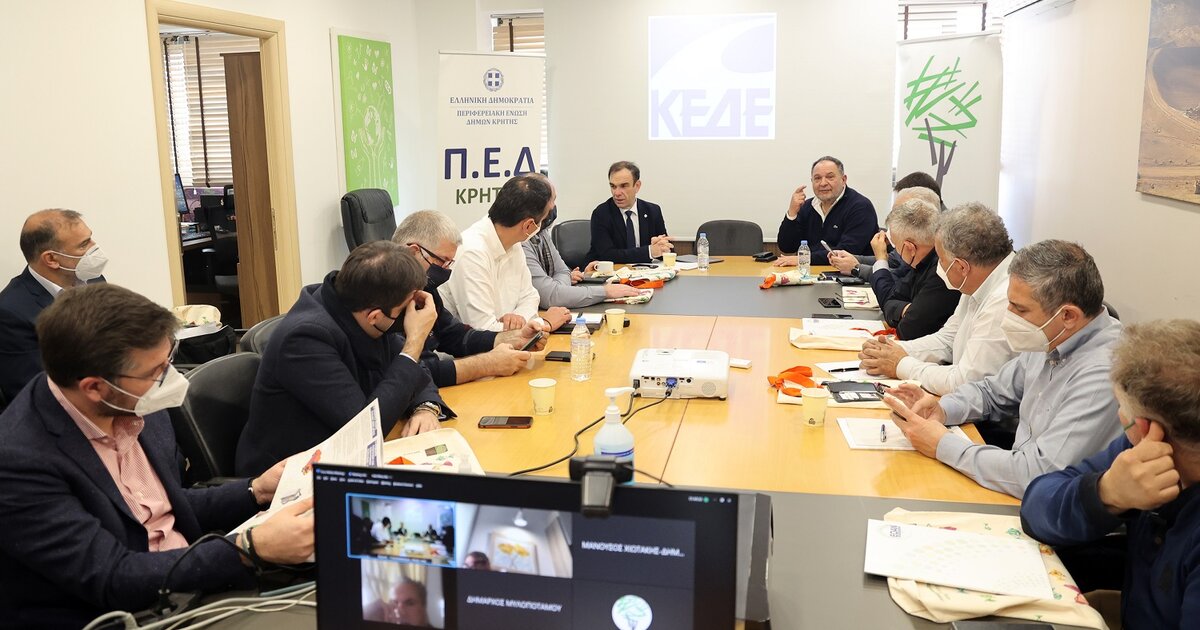 Πραγματοποιήθηκε σήμερα Τετάρτη 23 Φεβρουαρίου, στα γραφεία Ηρακλείου της Περιφερειακής Ένωσης Δήμων (ΠΕΔ) Κρήτης, συνεδρίαση των μελών του Διοικητικού Συμβουλίου της ΠΕΔ Κρήτης, Δημάρχων και εκπροσώπων των Δήμων από όλη την Κρήτη με τον Πρόεδρο του Ελληνικού Οργανισμού Ανακύκλωσης (ΕΟΑΝ) και Πρόεδρο του Εποπτικού Συμβουλίου της ΚΕΔΕ κ. Νίκο Χιωτάκη.