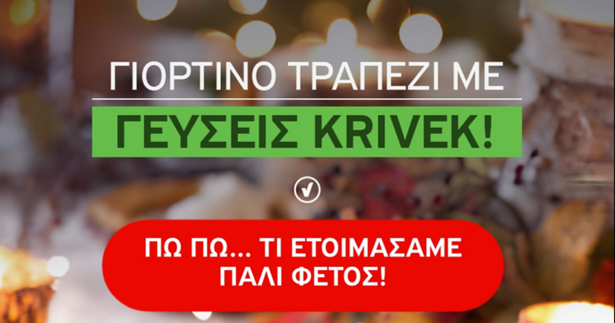 Ξεχωριστά Χριστούγεννα με τα καλύτερα προϊόντα και ασυναγώνιστες τιμές υπόσχεται η KRIVEK, που για ακόμα μια χρονιά έχει φροντίσει για εσάς και όλα όσα χρειάζεστε για το γιορτινό τραπέζι!