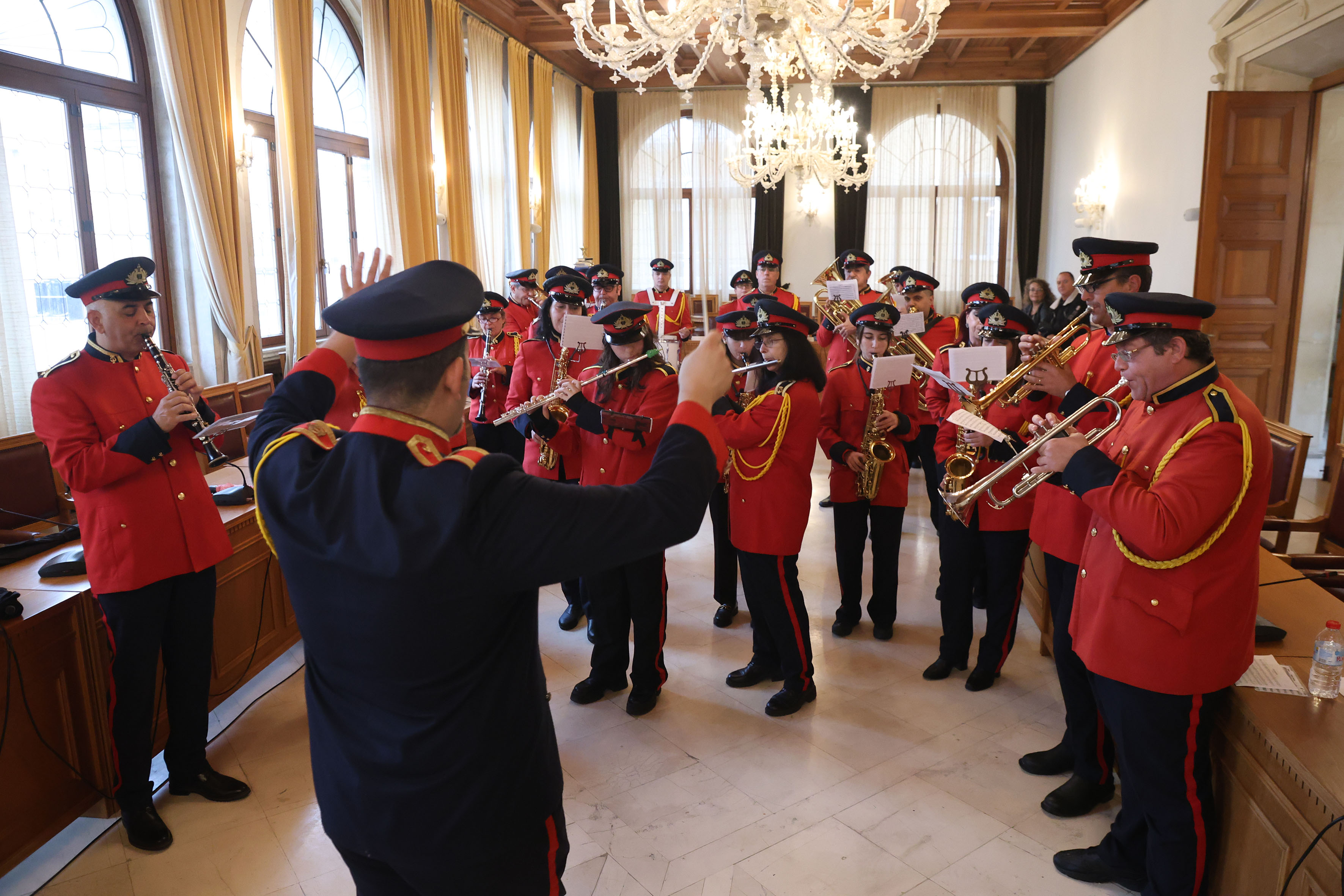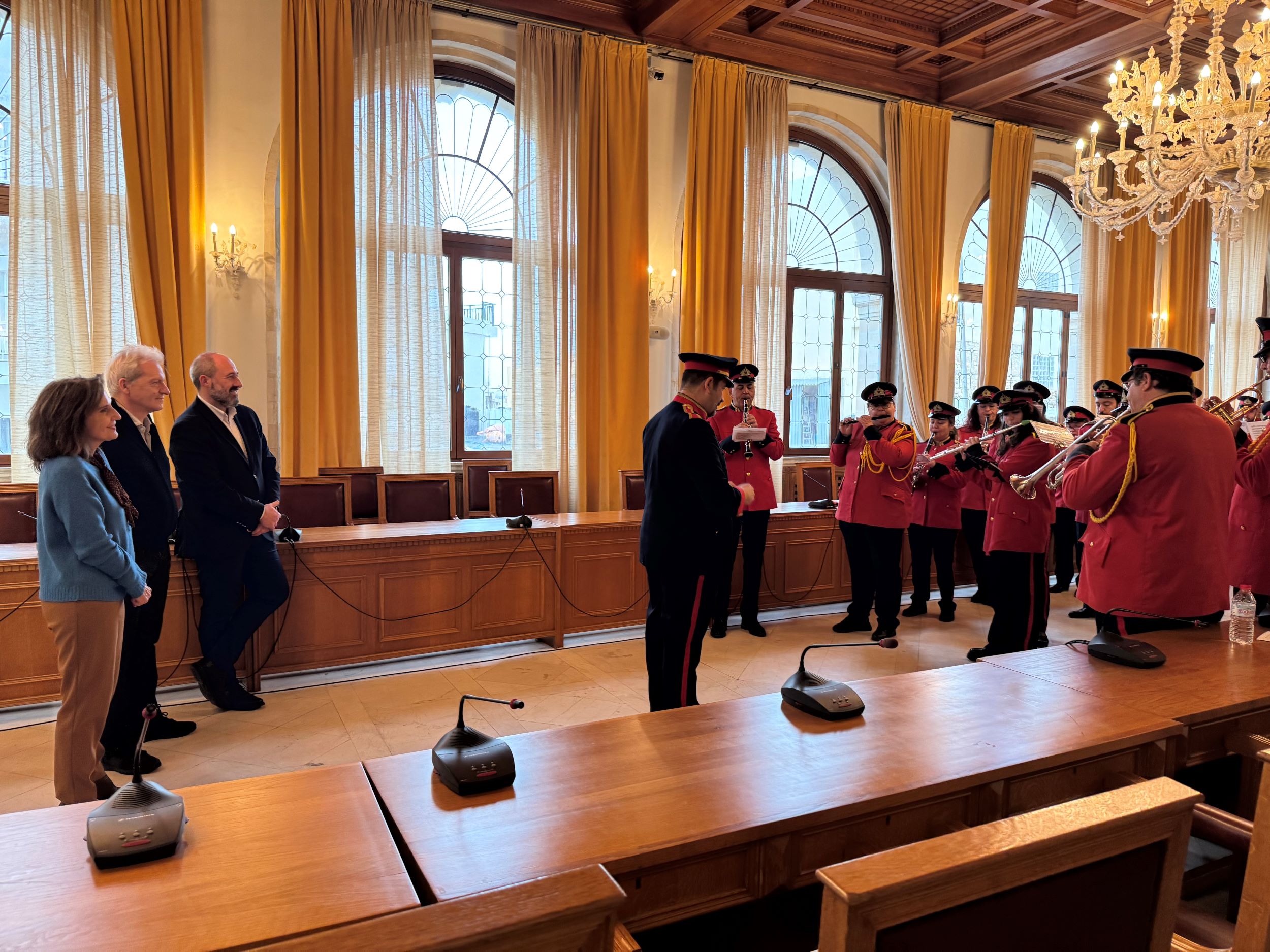 Υπό την καθοδήγηση του Αρχιμουσικού Λεωνίδα Τζωρτζάκη εντυπωσίασαν oι εορταστικές μελωδίες της Φιλαρμονικής Ορχήστρας του Δήμου Ηρακλείου. Τη σύντομη μουσική παράσταση παρακολούθησε ο Δήμαρχος Ηρακλείου με τον Αντιδήμαρχο Νίκο Γιαλιτάκη και την Αντιδήμαρχο Ρένα Παπαδάκη-Σκαλίδη και αντάλλαξε χαρμόσυνες ευχές με όλους τους μουσικούς της Ορχήστρας.