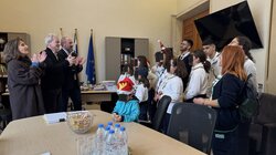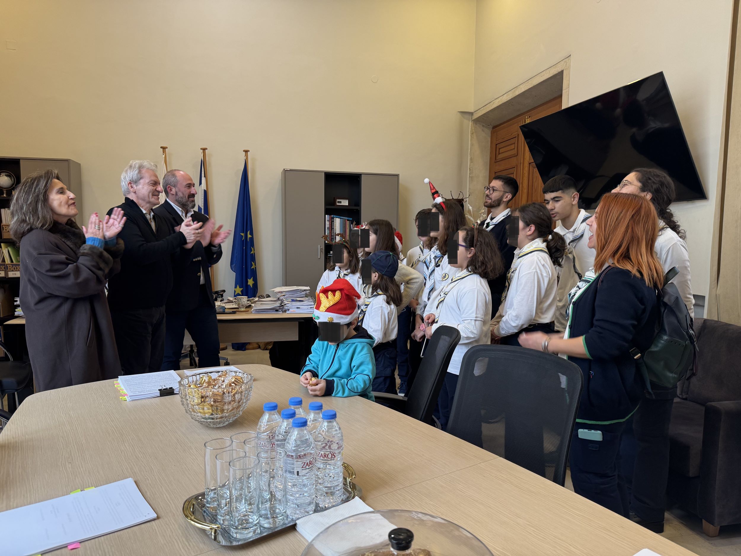 Οι ομάδες των αστεριών και των πουλιών, οι οδηγοί και οι μεγάλοι οδηγοί από το Τοπικό Τμήμα Ηρακλείου του Σώματος Ελληνικού Οδηγισμού μαζί με την Πρόεδρο του Τμήματος Μαλαματένια Παπαδάκη την Έφορο Ελένη Χατζηιωάννου και τα στελέχη Μιχάλη Ζαμάγια και Χριστίνα Μαυραντωνάκη έψαλαν τα κάλαντα και αντάλλαξαν ευχές για υγεία και ευημερία με τον Δήμαρχο Ηρακλείου, τον Αντιδήμαρχο Καθαριότητας, Περιβάλλοντος και Ενέργειας Νίκο Γιαλιτάκη και την Αντιδήμαρχο Πολιτισμού Ρένα Παπαδάκη-Σκαλίδη.