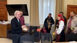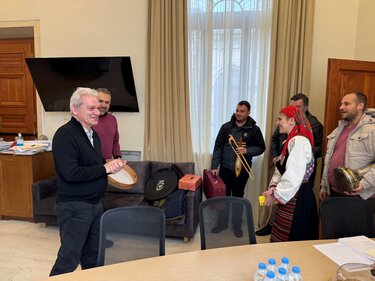Από το Σύλλογο Θρακιωτών Κρήτης ο Πρόεδρος Μιχάλης Αραμπατζής, ο Γενικός Γραμματέας Κωνσταντίνος Γεωργιάδης, ο Αλέξανδρος Παπουτσής, ο Γιάννης Ράπτης και η Ελπίδα Βοϊδανίδη, έψαλαν τα θρακιώτικα κάλαντα με τη συνοδεία θρακιώτικων μουσικών οργάνων.