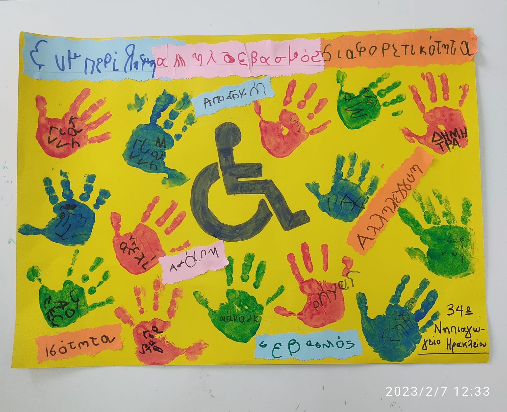 "Το σχολείο της συμπερίληψης: η αναπηρία ως αφορμή". Αυτός ήταν ο τίτλος του εργαστηρίου δεξιοτήτων που αποφάσισαν να δουλέψουν με τα παιδιά, οι νηπιαγωγοί του 34ου Νηπιαγωγείου Ηρακλείου.