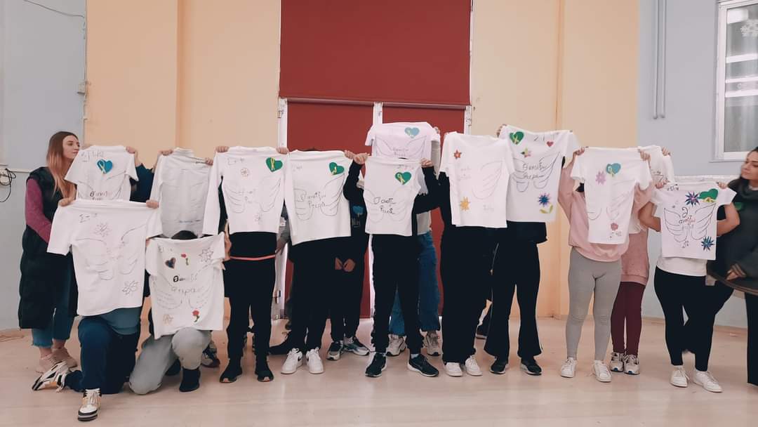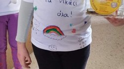 Κάθε τμήμα δημιούργησε ένα δυναμικό και αισιόδοξο σύνθημα το οποίο τα παιδιά ζωγράφισαν πάνω σε λευκά μπλουζάκια. Τα τμήματα παρουσίασαν τα συνθήματά τους σε όλους τους μαθητές/τριες του σχολείου σε μια δυναμική εκδήλωση στο αμφιθέατρο!