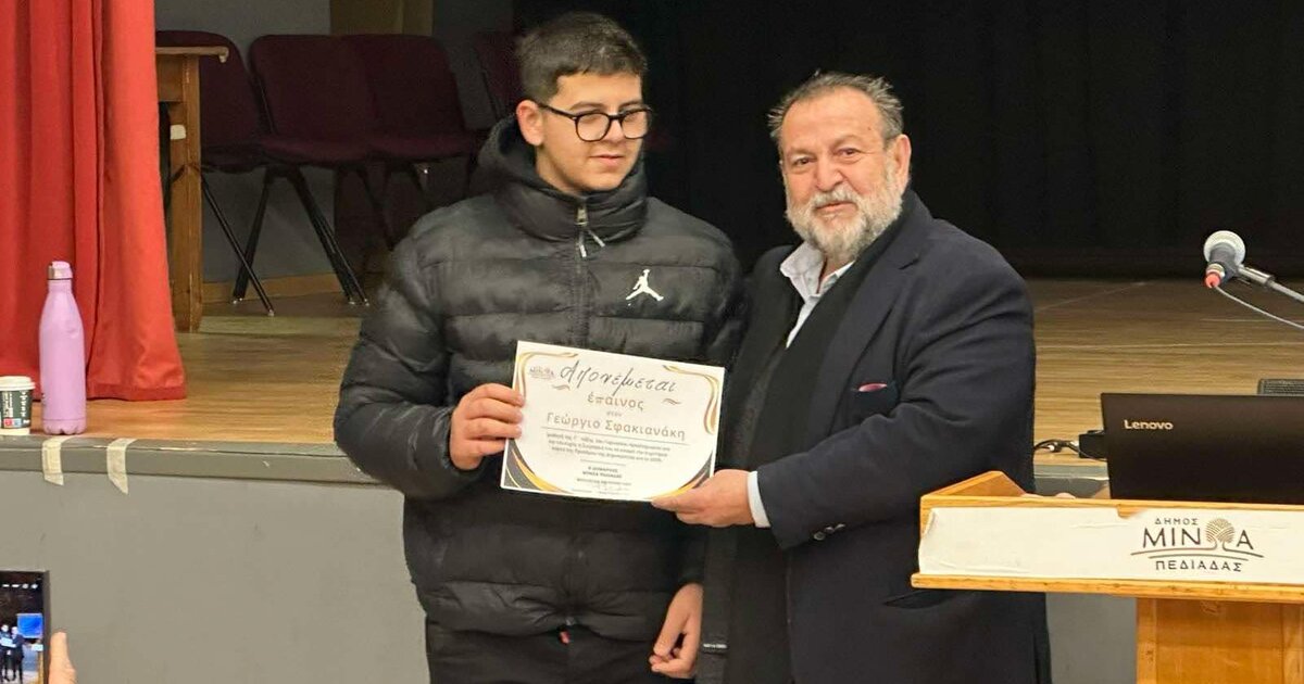 Εκδήλωση για τον σχολικό εκφοβισμό και βράβευση ταλαντούχου μαθητή από τον Δήμο Μινώα Πεδιάδας