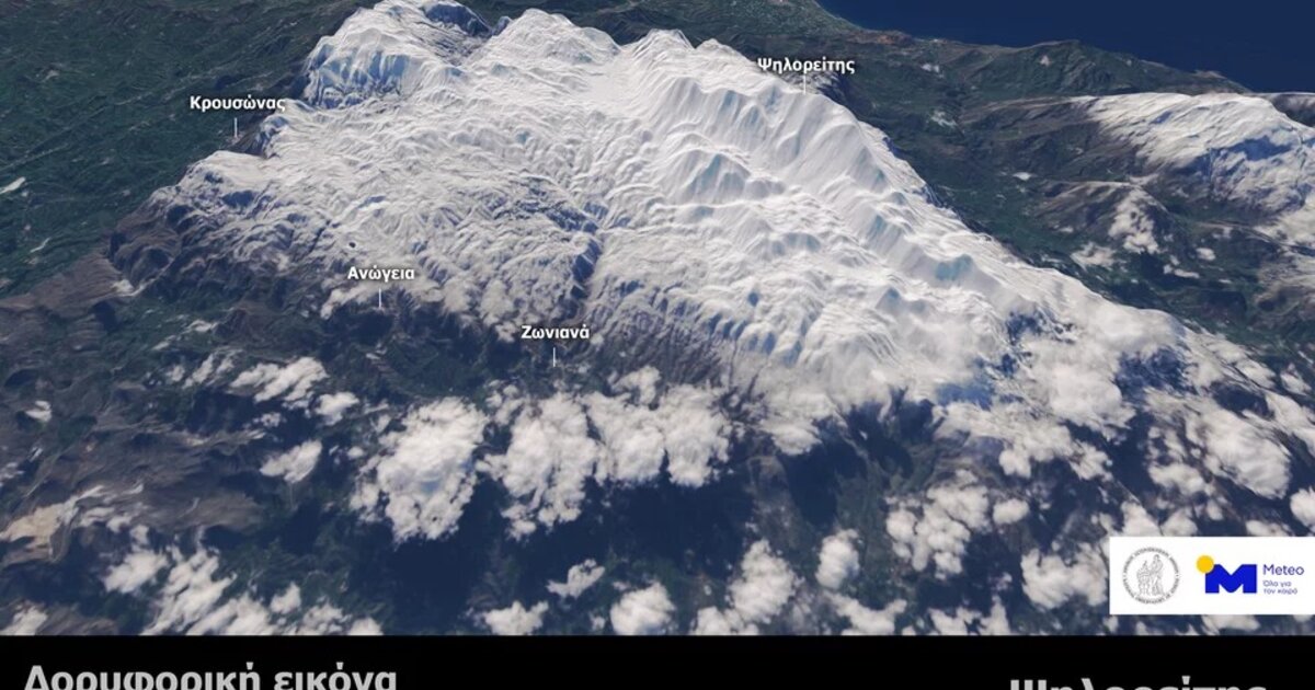 Δορυφορικά δεδομένα πολύ υψηλής ανάλυσης του αμερικανικού δορυφόρου Landsat-8, που πέρασε πάνω από τη χώρα μας το πρωί της 2ας Φεβρουαρίου 2024, τα οποία ανέλυσε και επεξεργάστηκε το meteo.gr σε τρισδιάστατη μορφή παρουσιάζουν την εκτεταμένη χιονοκάλυψη στα βουνά της Κρήτης, στον Ψηλορείτη και στο όρος Δίκτη, όπως αναφέρει ο Διευθυντής Ερευνών του Ινστιτούτου Περιβάλλοντος του Εθνικού Αστεροσκοπείου, μετεωρολόγος, Κώστας Λαγουβάρδος.