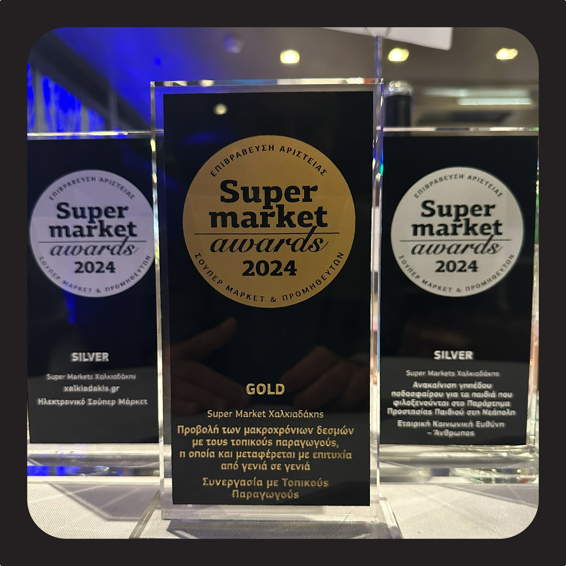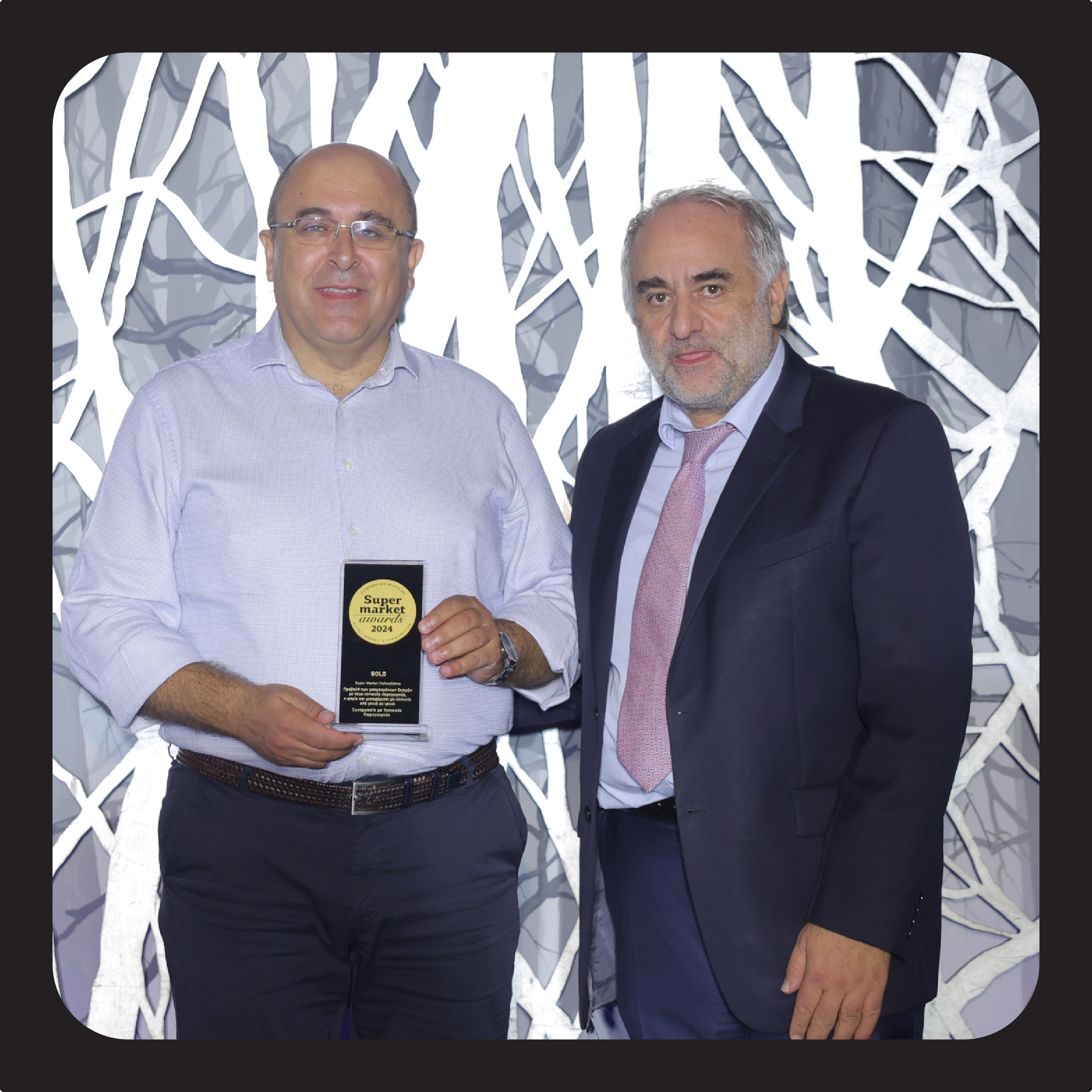Στα Supermarket Awards 2024 παρευρέθηκαν και παρέλαβαν τα βραβεία ο Διευθυντής του ecommerce Γιώργος Μπαλόπητας, ο Διευθυντής Τμήματος Συσκευασίας Μαναβικής Αγορών στα Λαχανικά Γιώργος Κριθινάκης και ο Διευθυντής Marketing Μιχάλης Τζαγκαράκης.