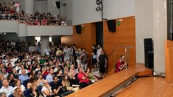 Ο χώρος κατακλύστηκε από γονείς, συγγενείς και φίλους των αποφοίτων, που θέλησαν να βρεθούν κοντά τους τη σημαντική αυτή στιγμή και να μοιραστούν μαζί τους τη χαρά και τη συγκίνηση για την απονομή των Διπλωμάτων τους.