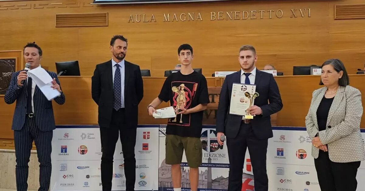 Η Αυτού Εξοχότης Πρέσβυς της Ελλάδας στο Βατικανό Κάτια Γεωργίου και ο Δρ. Επικοινωνίας Andrea Cicini βράβευσαν τον Ανδρέα Αλικανιώτη 20 ετών και τον Άγγελο Τσιαμούρα 19 ετών με το βραβείο Εθελοντισμού και Κοινωνικής Αλληλεγγύης σε μια φορτισμένη ατμόσφαιρα με το κοινό να χειροκροτεί όρθιο τους δύο ήρωες των Τεμπών.