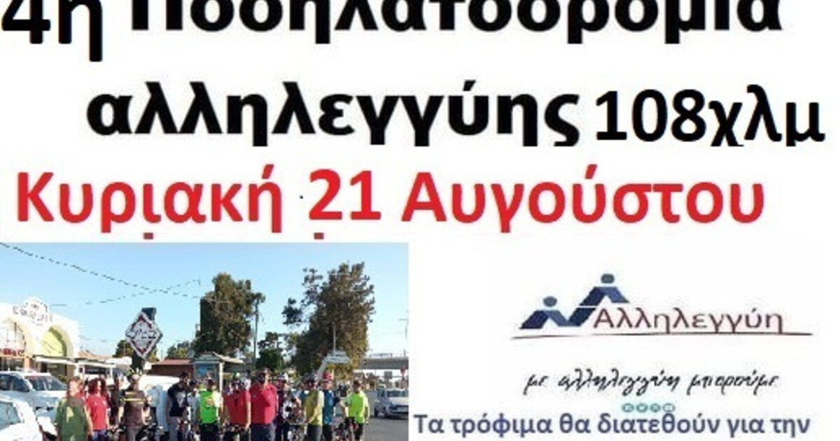 Ο Σύλλογος Μαραθωνοδρόμων Κρήτης με συνεργασία της Ιεράς Αρχιεπισκοπής Κρήτης & την διακονία Αγάπης διοργανώνουμε στις 21 Αυγούστου 2022 την τέταρτη ποδηλατοδρομία αλληλεγγύης που σκοπό έχει τη συγκέντρωση τροφίμων μακράς διάρκειας και λάδι για τις ευπαθείς ομάδες της πόλης μας που καθημερινά τροφοδοτεί με τρόφιμα η διακονία αγάπης