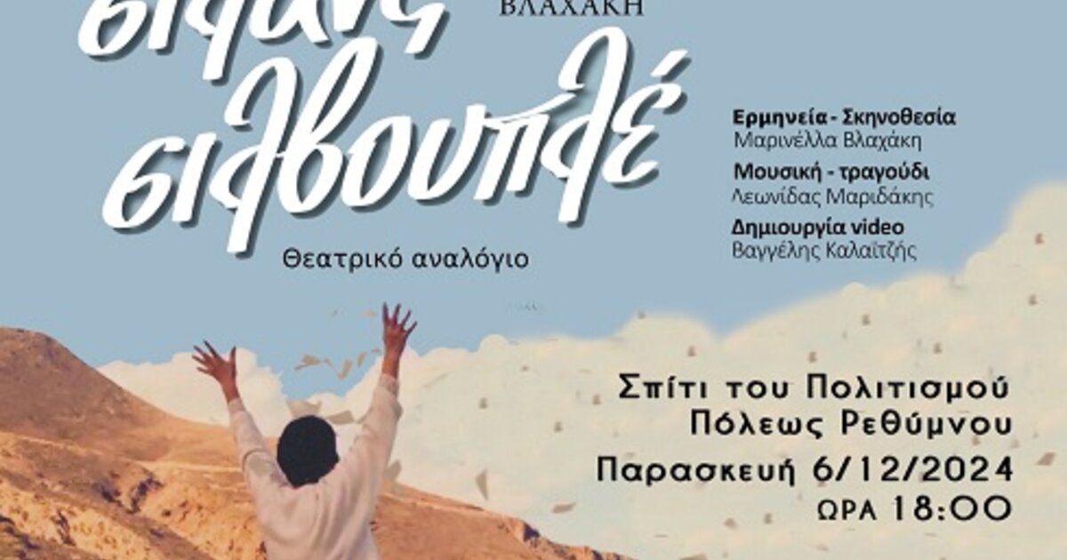 Στο πλαίσιο των «16ήμερων Δράσεων της Περιφέρειας Κρήτης για την Πρόληψη και την Καταπολέμηση της Βίας κατά των Γυναικών και των Κοριτσιών» και με την υποστήριξη της Διεύθυνσης Δημόσιας Υγείας και Κοινωνικής Μέριμνας της Περιφερειακής Ενότητας Ρεθύμνου και του Δήμου Ρεθύμνου, παρουσιάζεται την Παρασκευή, 6 Δεκεμβρίου 2024 στις 6:00μ.μ., στο Σπίτι του Πολιτισμού το θεατρικό αναλόγιο της Μαρινέλλας Βλαχάκη «ΣΙΛΑΝΣ ΣΙΛΒΟΥΠΛΕ». Η είσοδος είναι ελεύθερη για το κοινό.