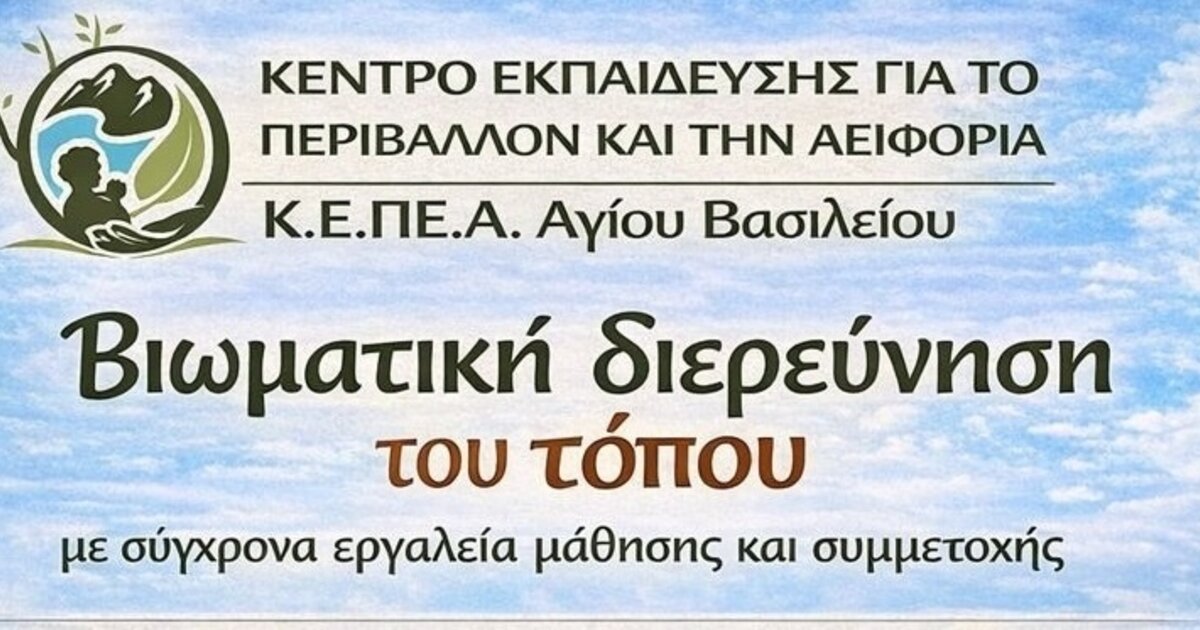 Το Κέντρο Εκπαίδευσης για το Περιβάλλον και την Αειφορία (Κ.Ε.ΠΕ.Α.) Αγίου Βασιλείου Ρεθύμνου, στο πλαίσιο του επιμορφωτικού του έργου, σε συνδιοργάνωση με την Περιφέρεια Κρήτης και σε συνεργασία με εκπαιδευτικούς και επιστημονικούς φορείς της Κρήτης, διοργανώνει δύο (2) Ειδικές Θεματικές Επιμορφωτικές Δράσεις πεδίου για εκπαιδευτικούς Πρωτοβάθμιας και Δευτεροβάθμιας Εκπαίδευσης με τίτλο: