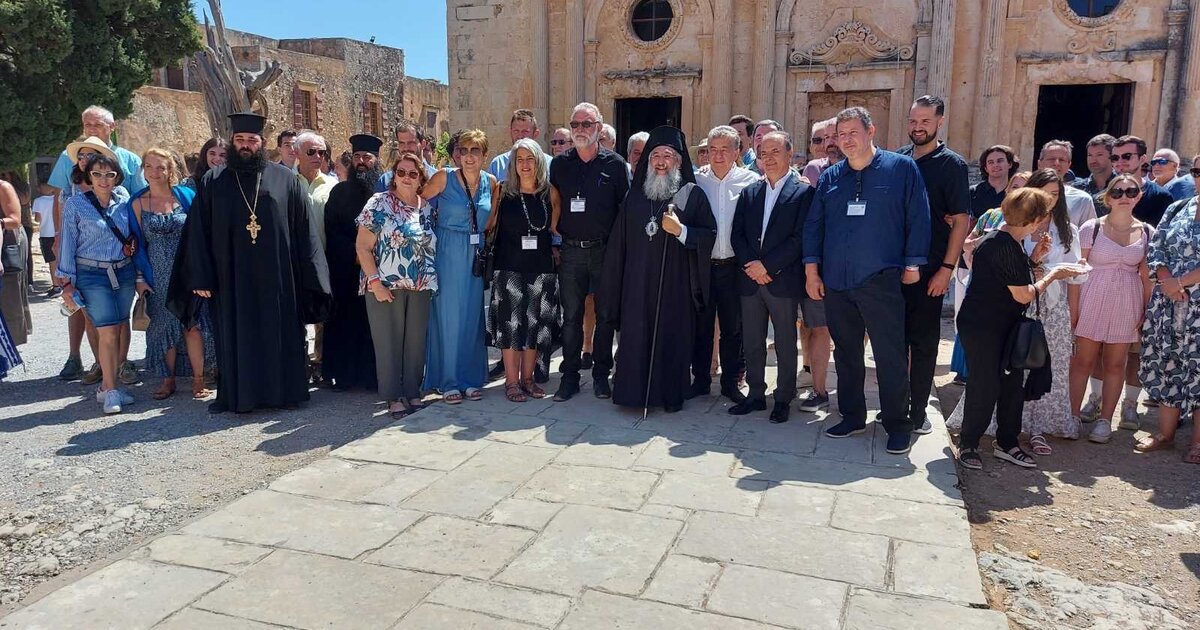Το προεδρείο της Παγκρητικής Ένωσης Αμερικής με περισσότερους από 200 ομογενείς που πραγματοποιούν ιστορική επίσκεψη στην Κρήτη υποδέχθηκαν σήμερα στην Μόνη Αρκαδίου στο Ρέθυμνο, ο Αρχιεπίσκοπος Κρήτης κ.κ. Ευγένιος, ο Περιφερειάρχης Κρήτης Σταύρος Αρναουτάκης και ο Δήμαρχος Ρεθύμνου Γιώργος Μαρινάκης.