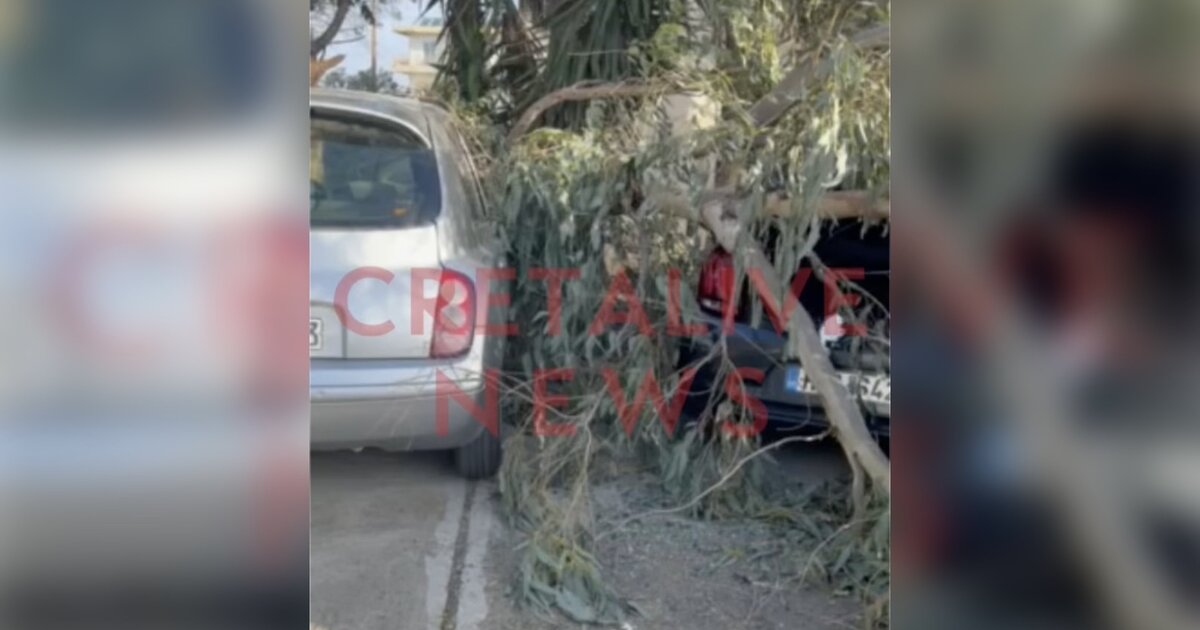 Θυελλώδεις άνεμοι στην Κρήτη: Δέντρο έπεσε πάνω σε σταθμευμένα οχήματα